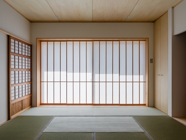 東京郊外の大規模造成地域内に母屋、離れ、納屋からなる6人家族の為の計画です。クライアントは長い間この地に住まわれていましたが、区画整理事業に伴い移転を余儀なくされました。移転前の敷地は里山に包まれた中にあり、築約100年の母屋や蔵からは穏やかな時の移ろいを感じることが出来ました。クライアントからはそれまでの旧母家の佇まいや、材料を継承してほしいとのお話を頂きました。そこで計画をすすめるにあたり旧母家の大黒柱や建具など、再利用できる古材を計測することから始めました。また、建物の外観や構造など出来る限り受け継ぐようにプランニングを進めていきました。