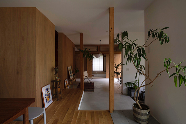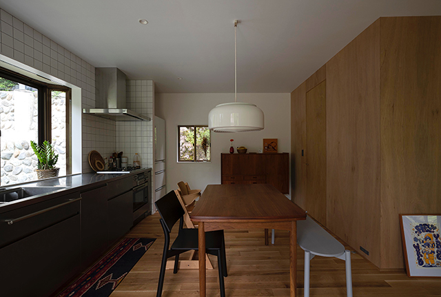 部屋数を減らす事で生まれる「余白」が空間と空間をつなぎ、そこが新たな居場所となりました。その余白は暮らし方に幅を持たせてくれると同時に、新旧の時間を繋ぎ、外部環境とも新たな繋がりを造ります。