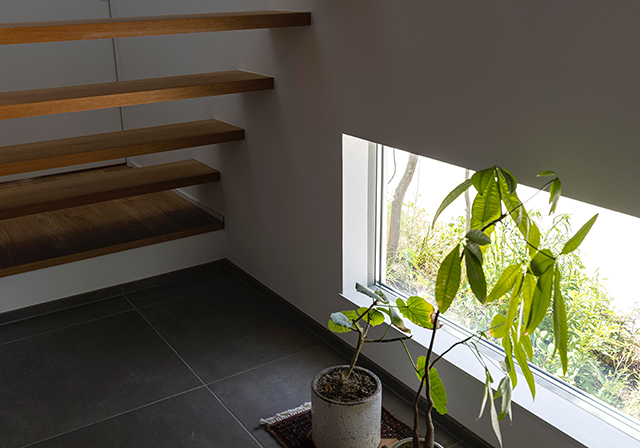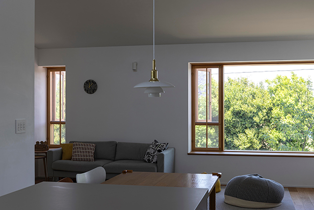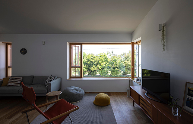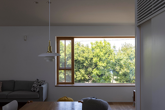 広がりのある開口部は印象的な出窓とし、空間に奥行きとアクセントを与えました。